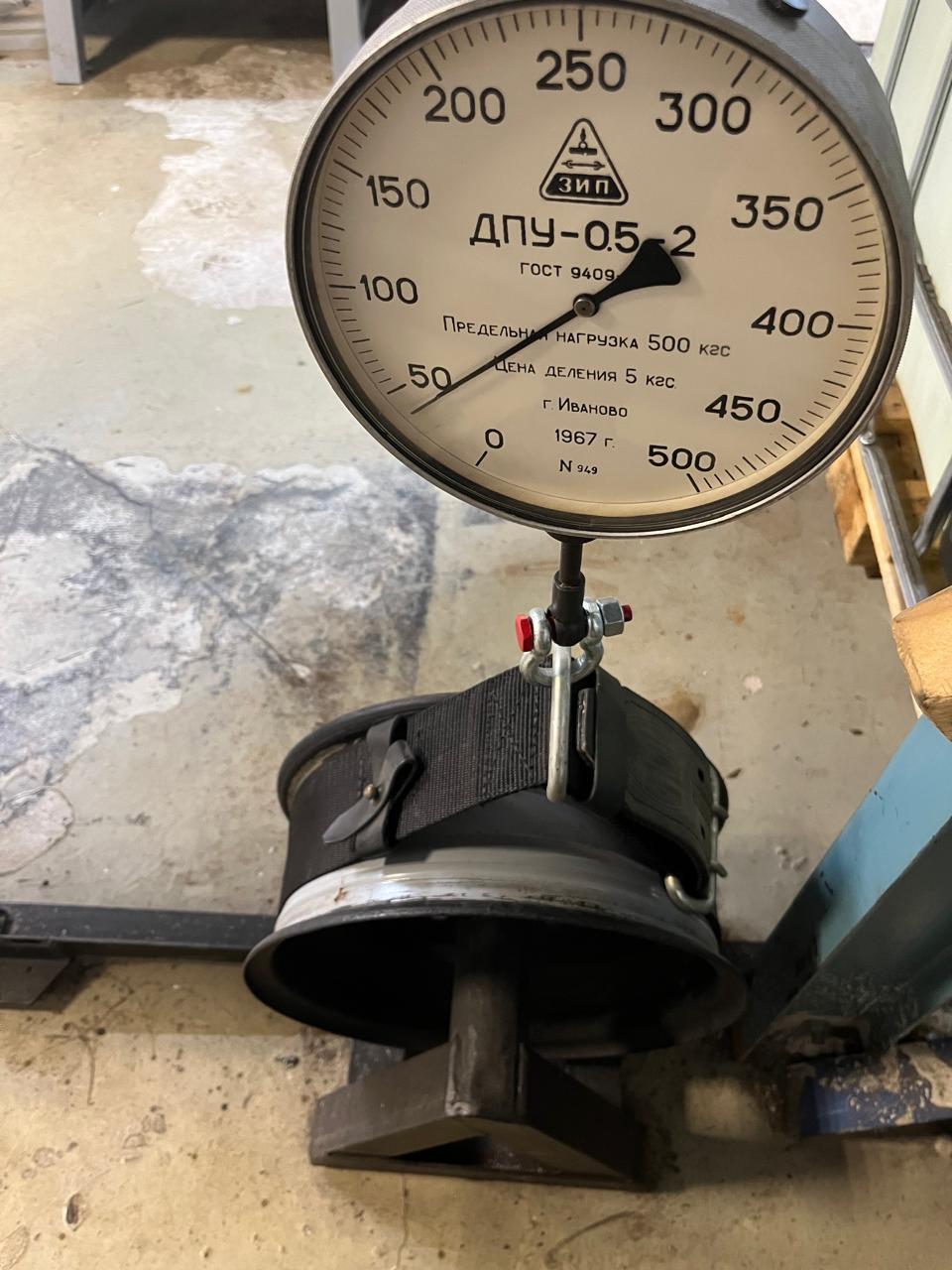 Испытание нагрузкой – к изделию прикладывается определенная нагрузка, установленная стандартом и рекомендациями производителя, для проверки прочности и стойкости элементов снаряжения. Нагрузка задается с помощью механической лебедки и измеряется динамометром.